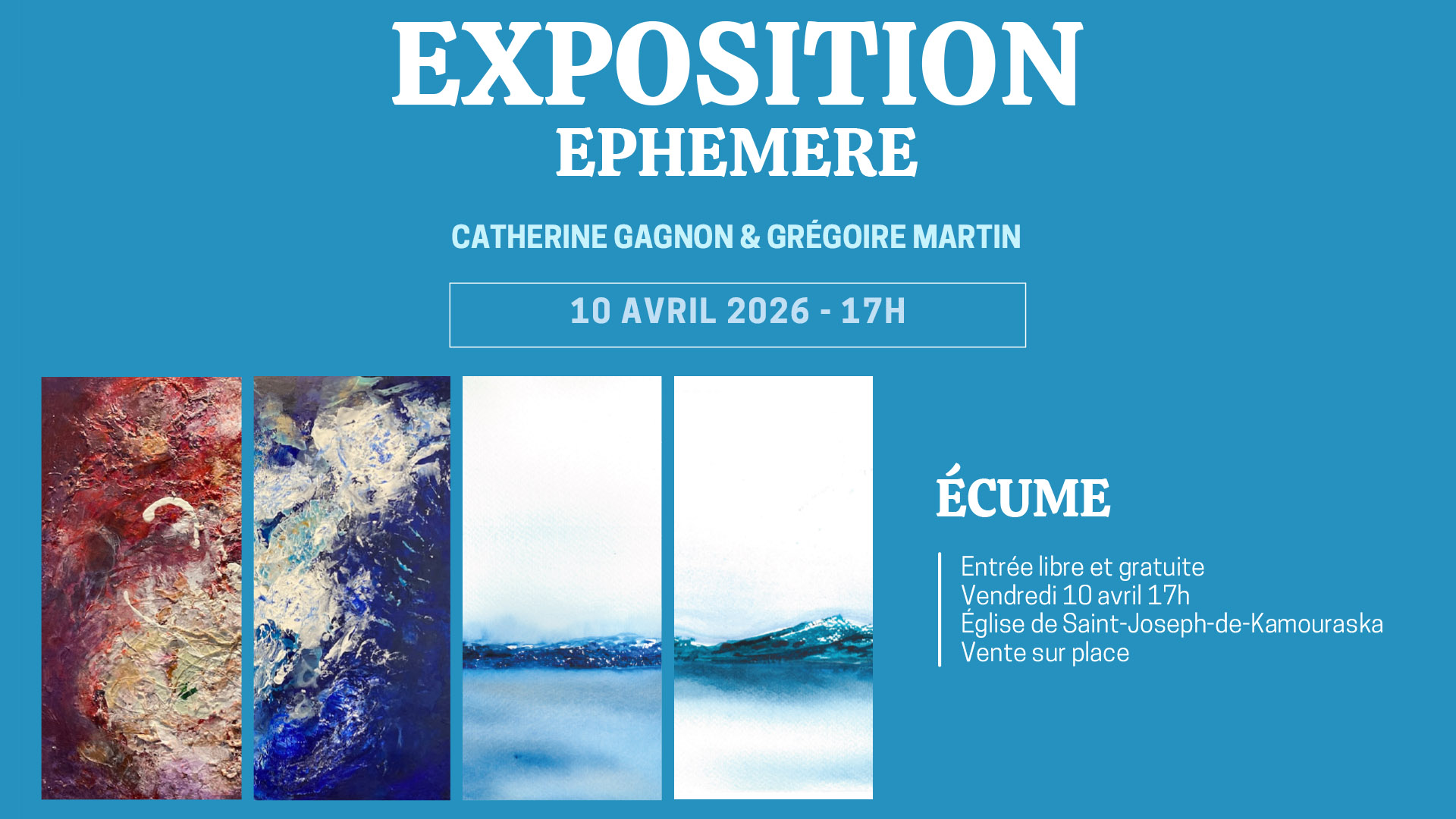 Catherine Gagnon et Grégoire Martin présentent ÉCUME, exposition éphémère le 10 avril à Saint-Joseph-de-Kamouraska, alliant art abstrait et marine, favorisant…